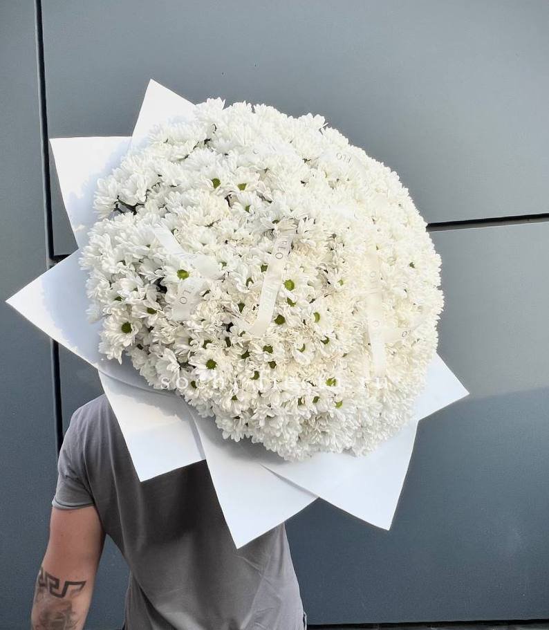 роскошный букет из 101 хризантемы.