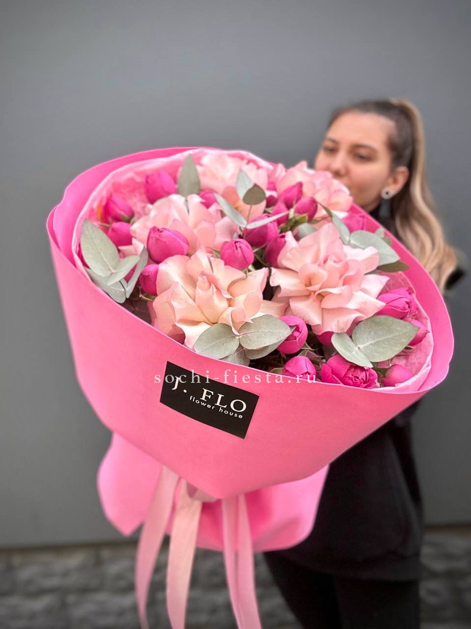 Для заказа товара "Букет французских и пионовидных роз "Ламиносо"" с доставкой в Комсомольске-на-Амуре нажмите в корзину