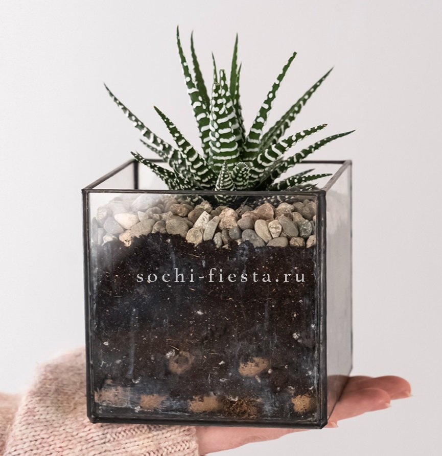 Флорариум Кубик с суккулентом Хавортия