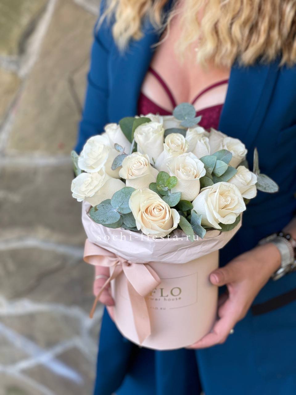 кустовая роза, лилия, диантус, лотос, эвкалипт, бокс 13.