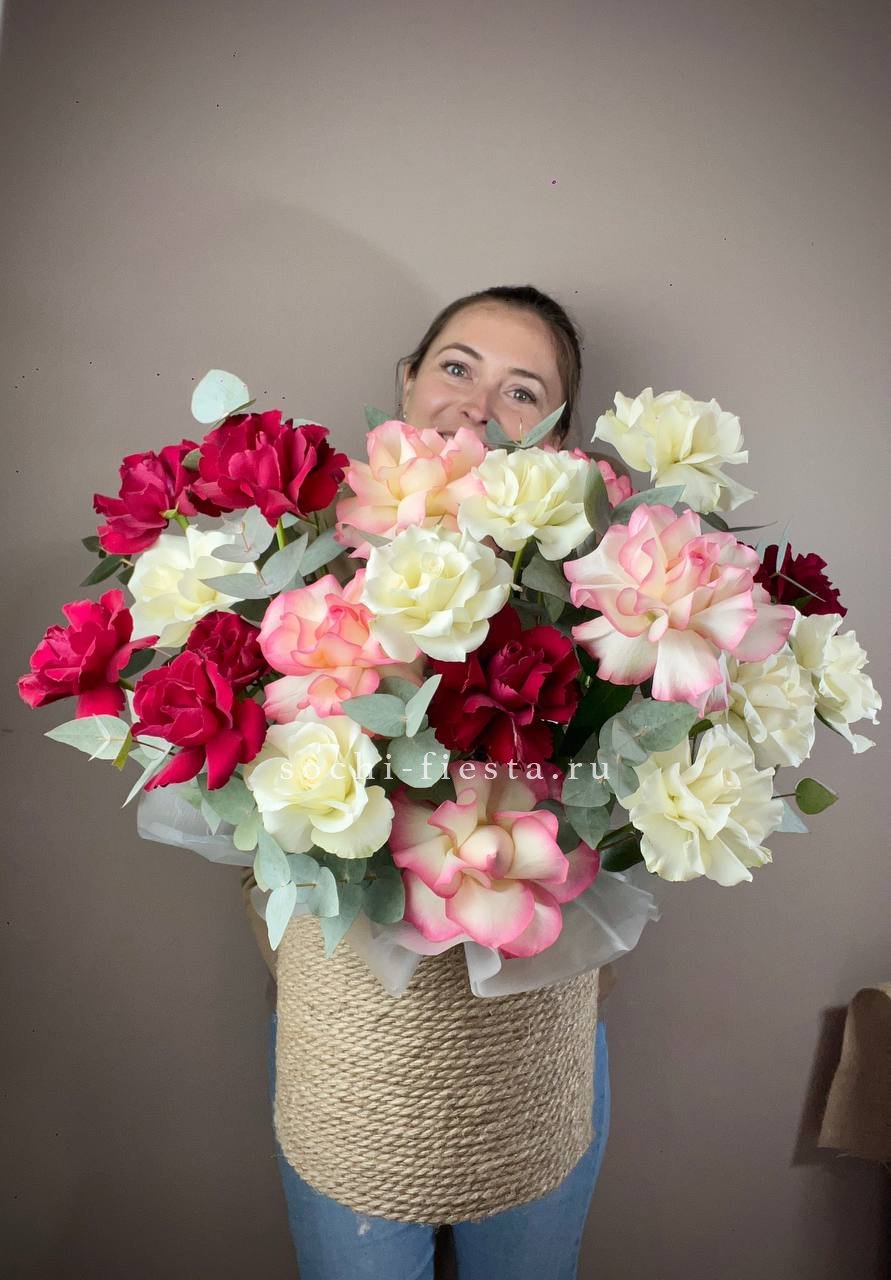 Для заказа товара "35 французских роз микс в джутовом боксе" с доставкой в Комсомольске-на-Амуре нажмите в корзину