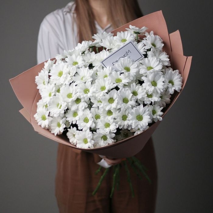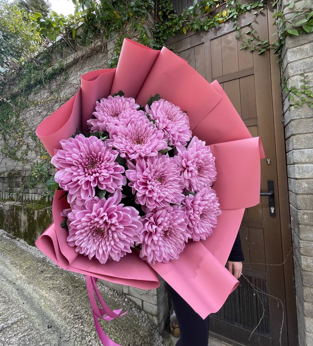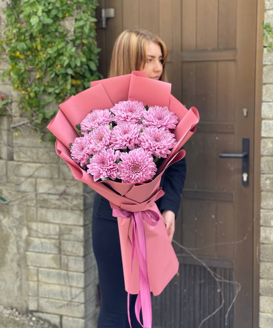 хризантема кустовая - 9 шт., лагурус, пленка,  лента.