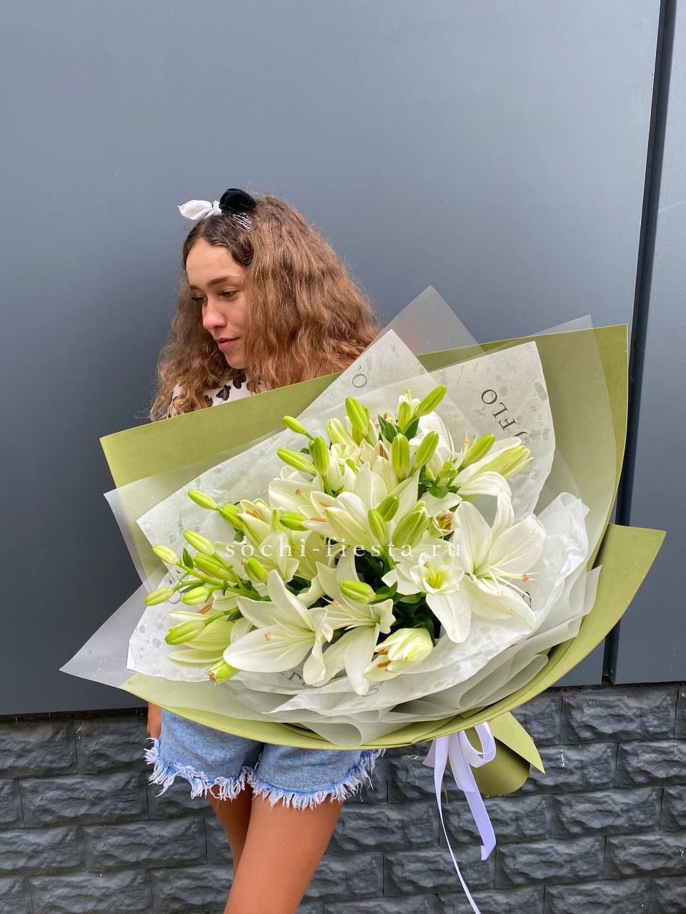 Для заказа товара "Букет лилий "Изумруд"" с доставкой в Комсомольске-на-Амуре нажмите в корзину