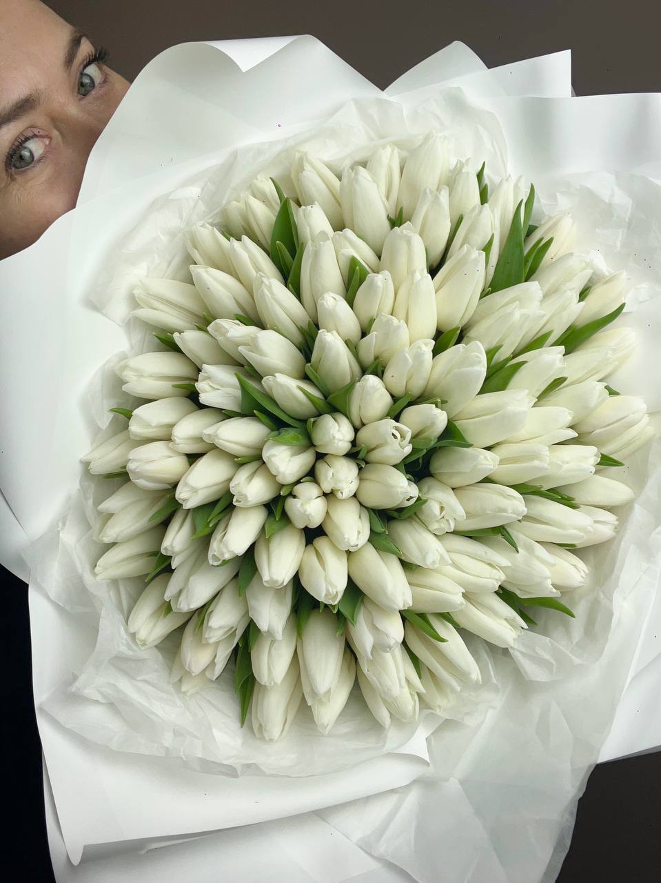 Для заказа товара "101 белый тюльпан №2" с доставкой в Комсомольске-на-Амуре нажмите в корзину