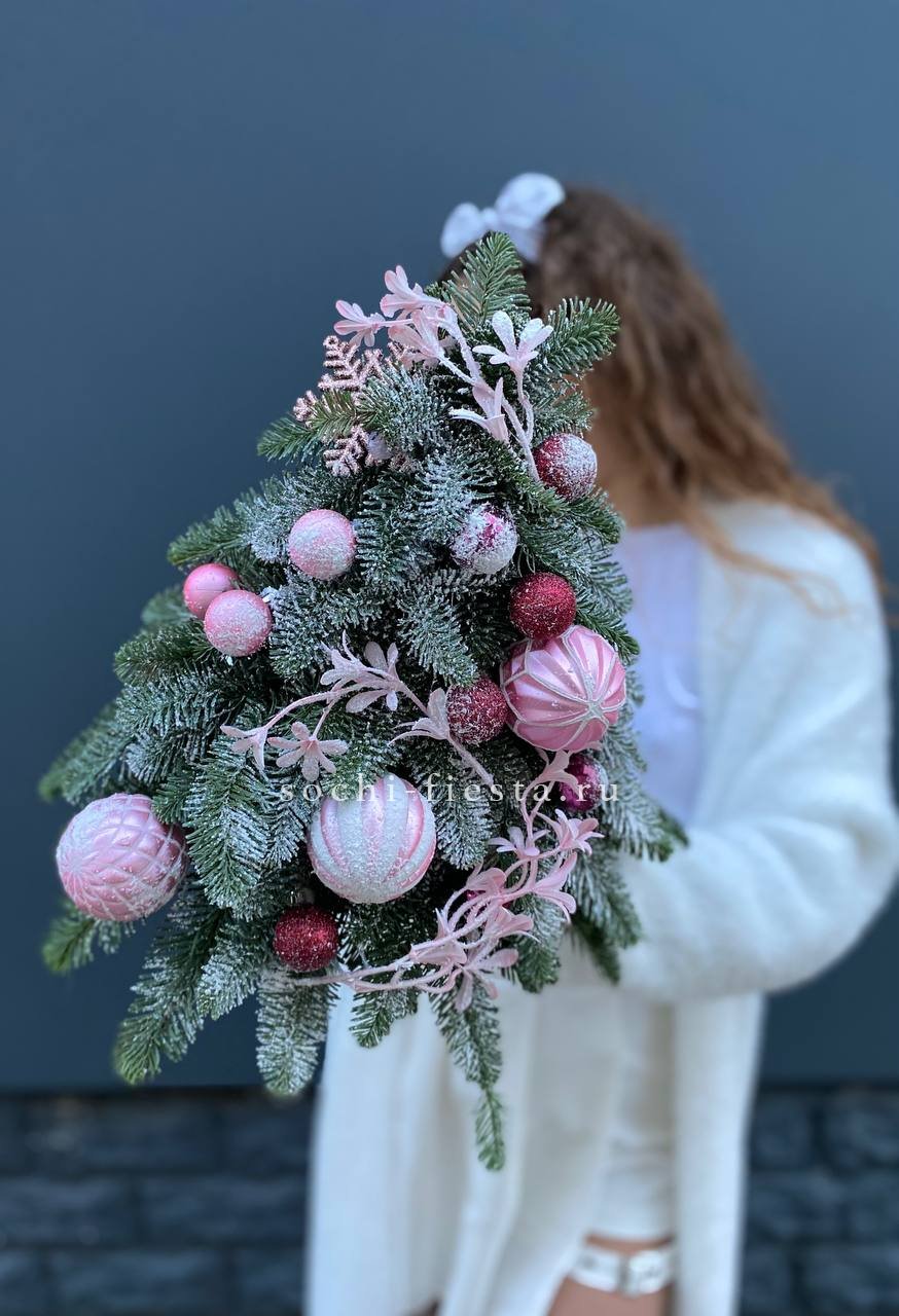 Пушистая ёлочка из датского нобилиса с яркими игрушками на ветках. Форма повторяет силуэт настоящего дерева и занимает совсем немного места. Готова к размещению сразу после распаковки.