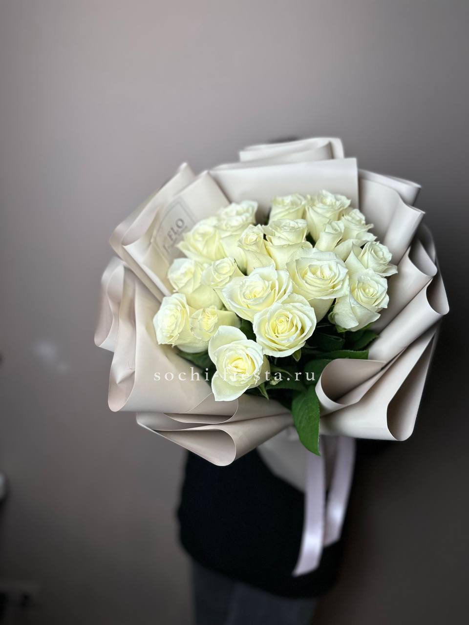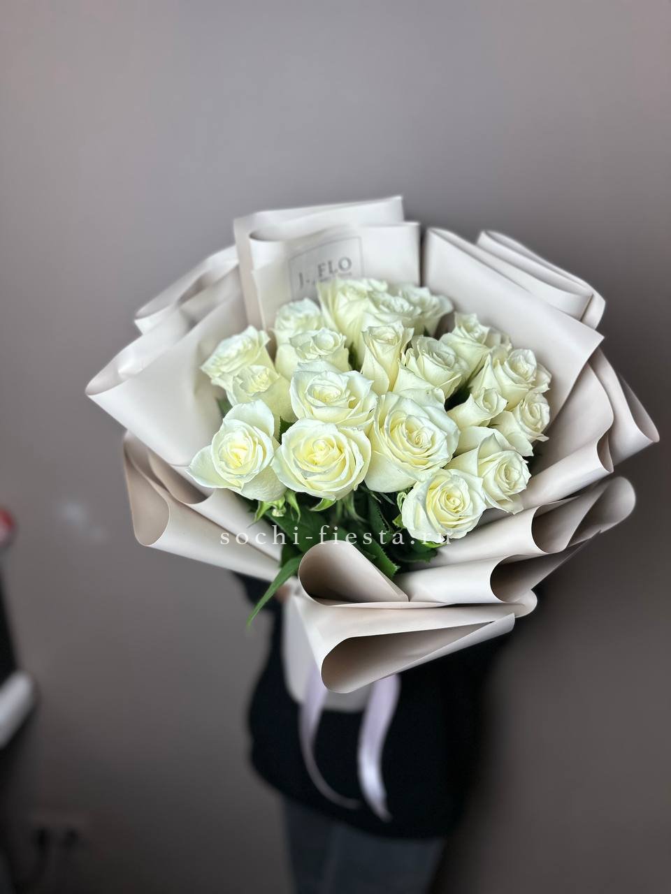 вывернутые розы - 21 шт., эвкалипт, лента, упаковка.