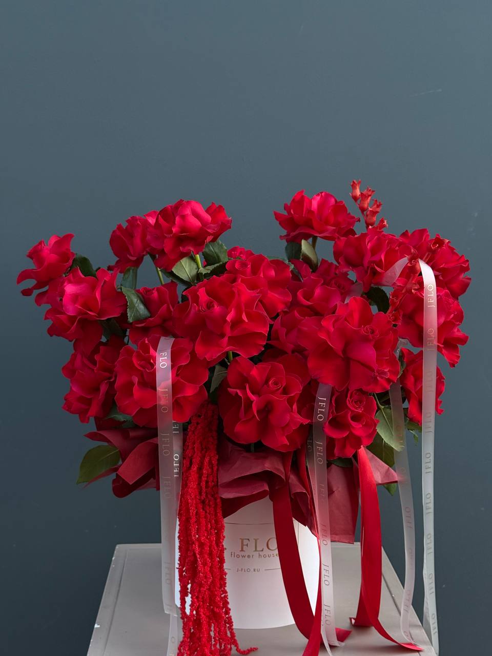 Red Naomi в графичной упаковке BLVCK — это игра между классическим красным и современной подачей. Плотные бутоны раскрываются медленно, сохраняя форму и насыщенность цвета.