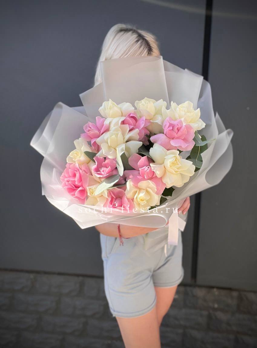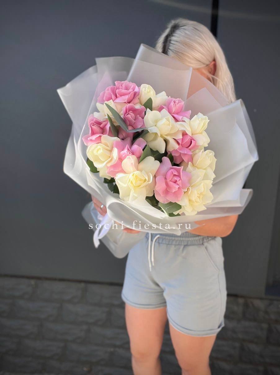 Для заказа товара "15 бело-розовых роз" с доставкой в Комсомольске-на-Амуре нажмите в корзину