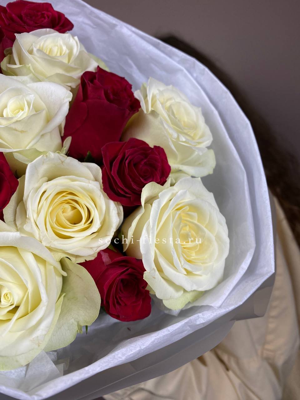 Для заказа товара "Букет из красных белых 15 роз" с доставкой в Комсомольске-на-Амуре нажмите в корзину